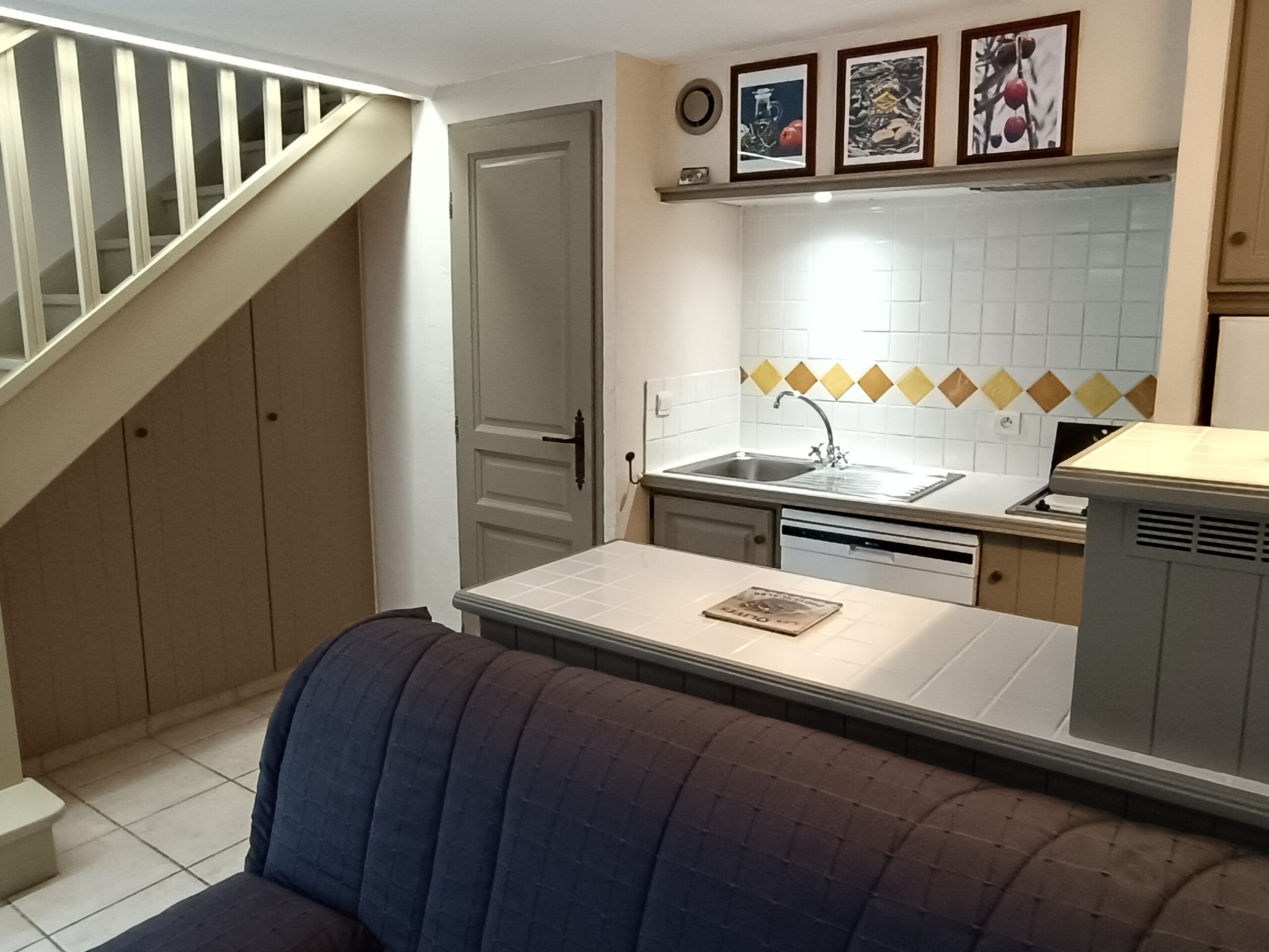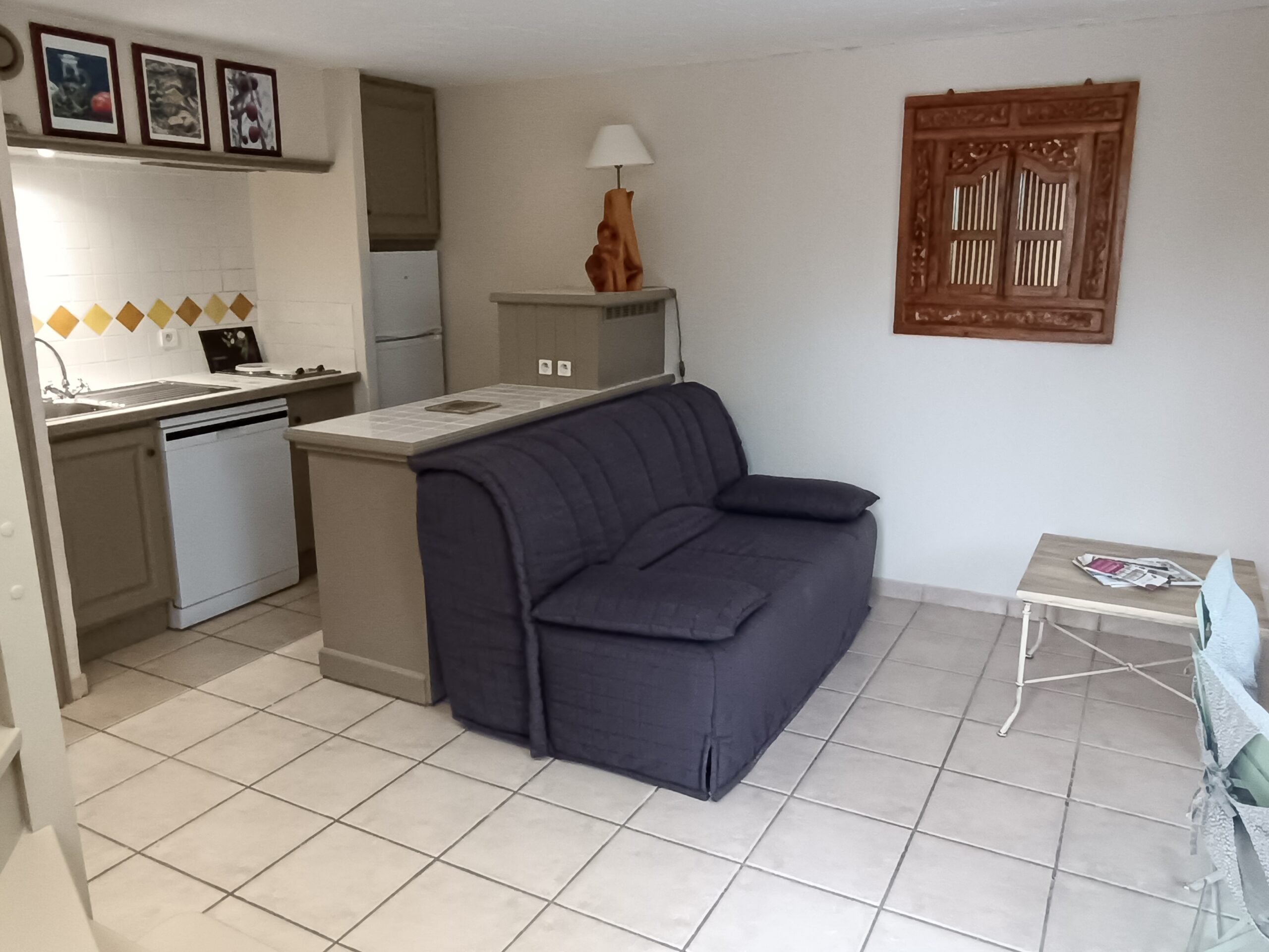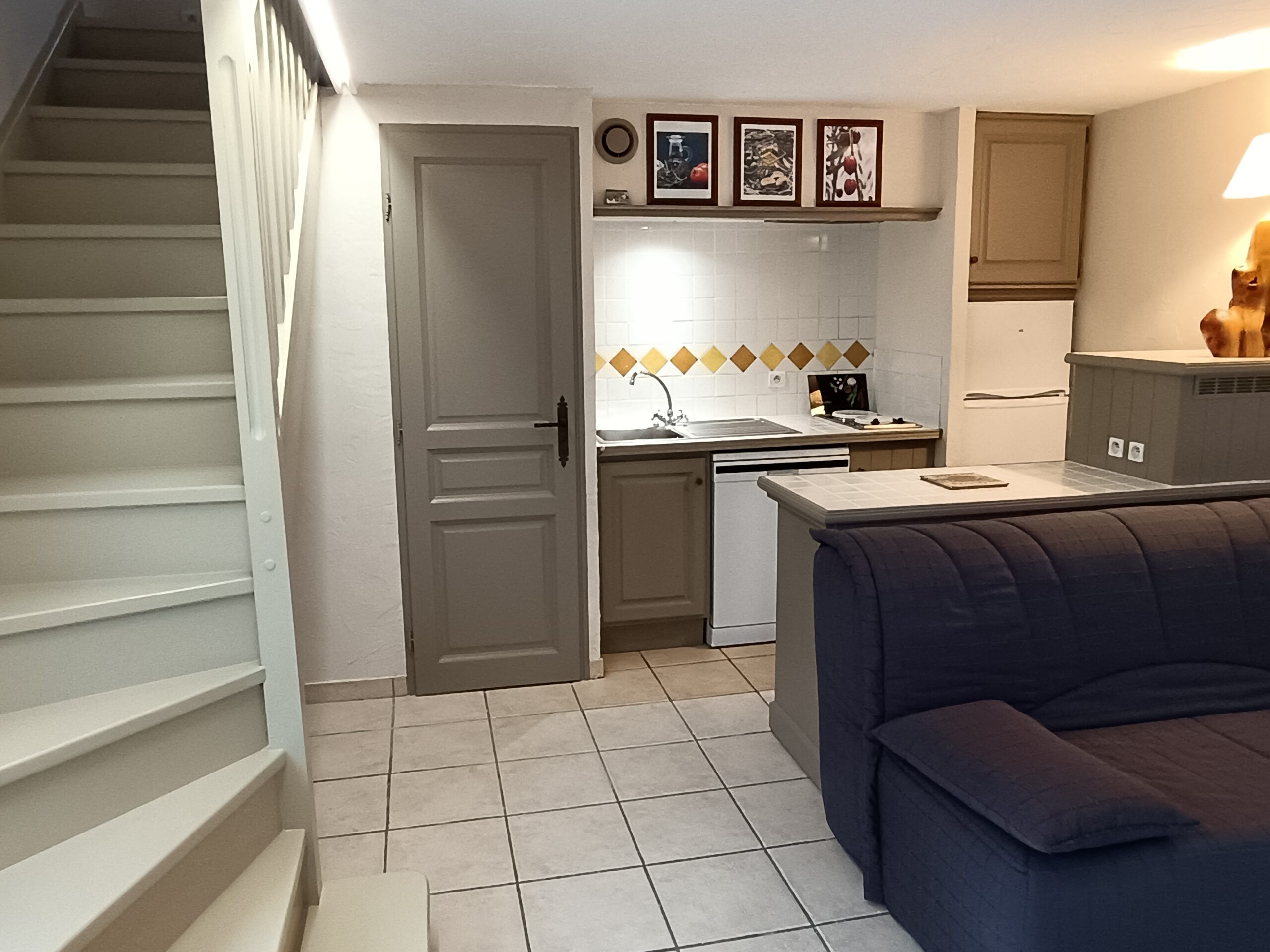 Bien équipé, le séjour en rez de jardin est meublé d’une table et de quatre chaises ainsi que d’un canapé convertible de 160 cm x 200. Le coin cuisine est doté de toute la vaisselle nécessaire, d’un frigo avec partie congélation, de 2 plaques électriques, un four multifonction micro-onde grill , une bouilloire, une cafetière à filtre. La baie coulissante du séjour ouvre sur une terrasse orientée Est et Sud, avec plancha ,salon de jardin et accès direct à la piscine. La salle d’eau située à l’étage est dotée d’une douche et d’un lavabo. Les toilettes sont séparées. Télévision et Wifi .