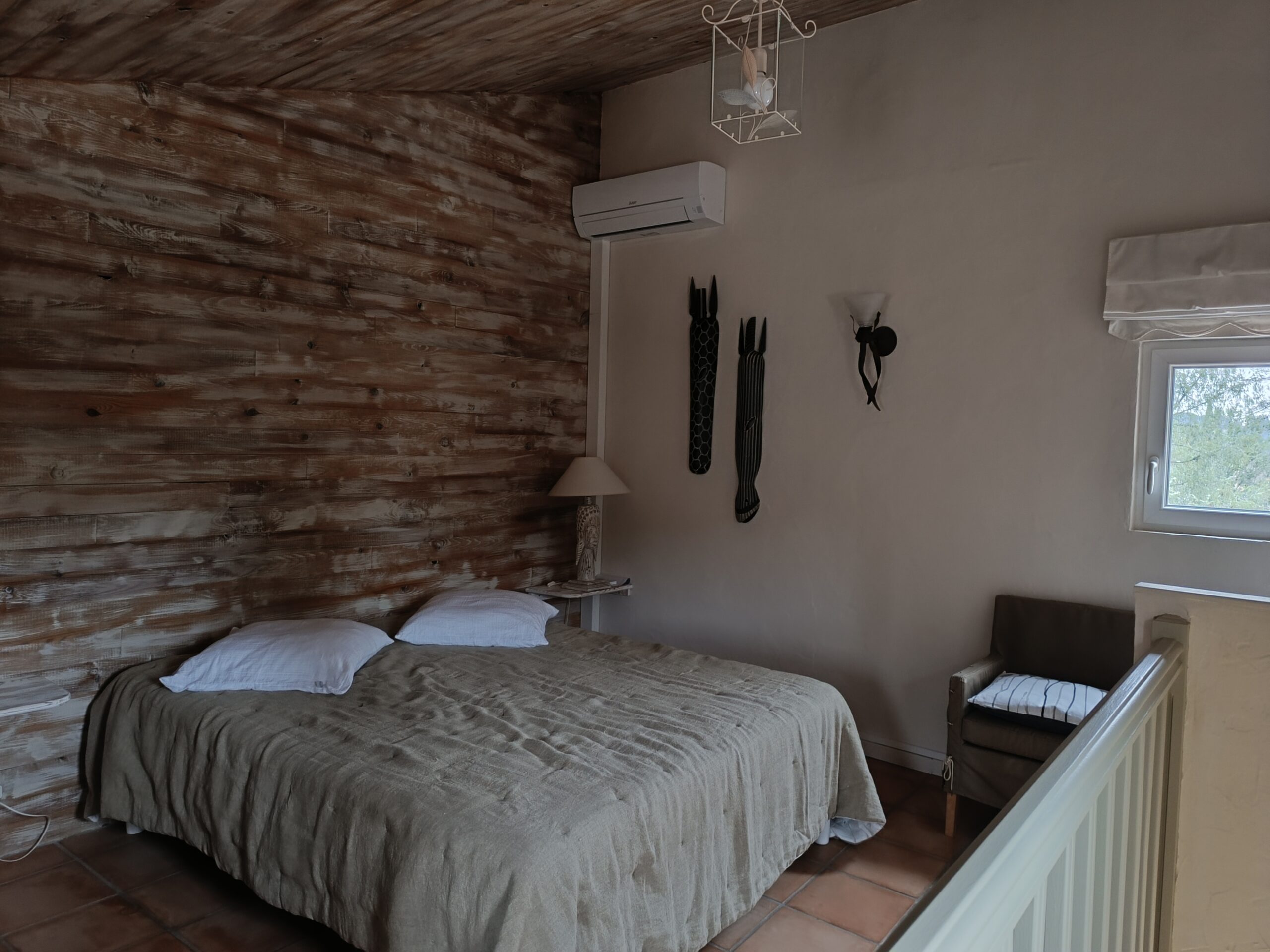 L’accès à la chambre indépendante du séjour se fait par un escalier droit menant au premier étage. Elle est aménagée d un  lit de 160 cm x 200 cm.